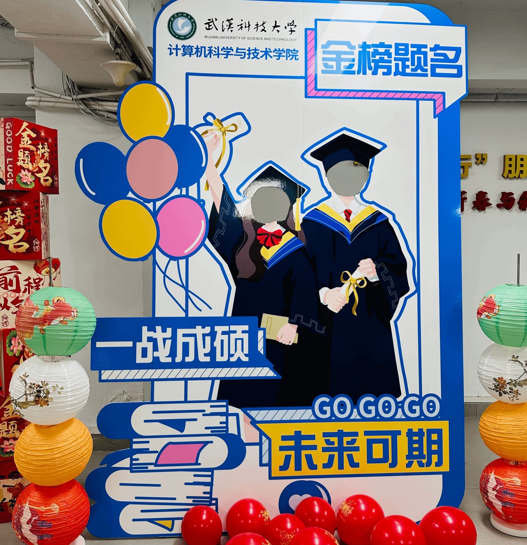领导、老师与低年级学子共同手写的加油贺卡,承载着师生间的牵挂与期许。与此同时,曾宪森老师与志愿者们同步前往考研自习室,悬挂“逐梦前行,全力以赴”等励志标语,精心打造“上岸墙”——39所985高校及武汉地区知名高校的校徽醒目陈列,让自习室成为充满希望与力量的备考“能量场”,助力学子们在冲刺阶段凝心聚力。