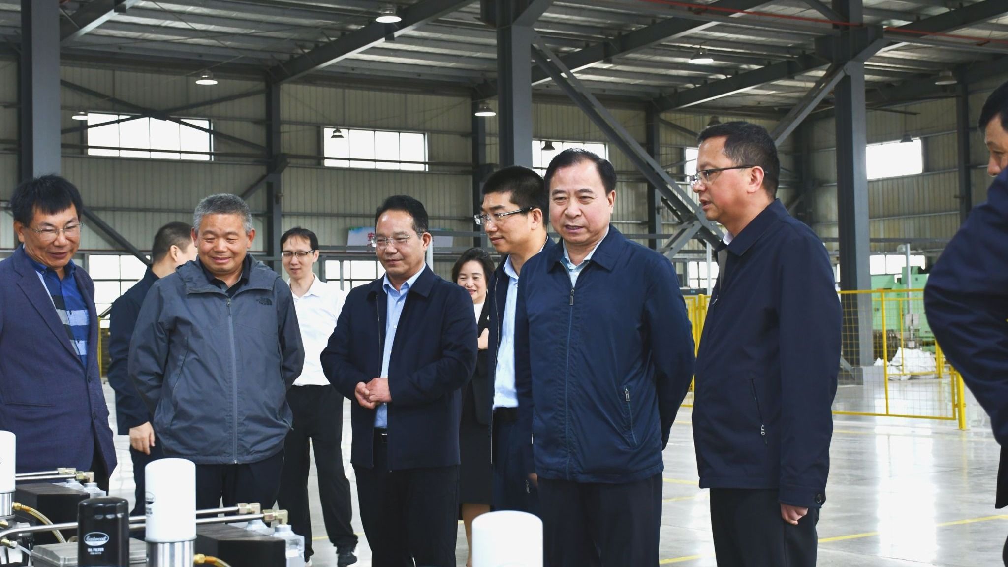 座谈会结束后,孙国胜一行在陈宏斌陪同下参观了和丰机电生产车间。